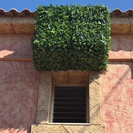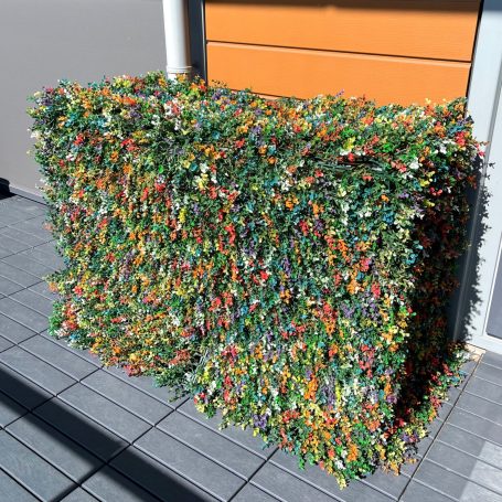 Een botanische ombouw gemaakt met uv bestendige kunstplanten, voor airco’s en warmtepompen, is een slimme manier om lelijke buitenunits te verbergen. Daarnaast heb je er geen omkijken naar. Dit type ombouw combineert een natuurlijke uitstraling en het gemak van kunstplanten.